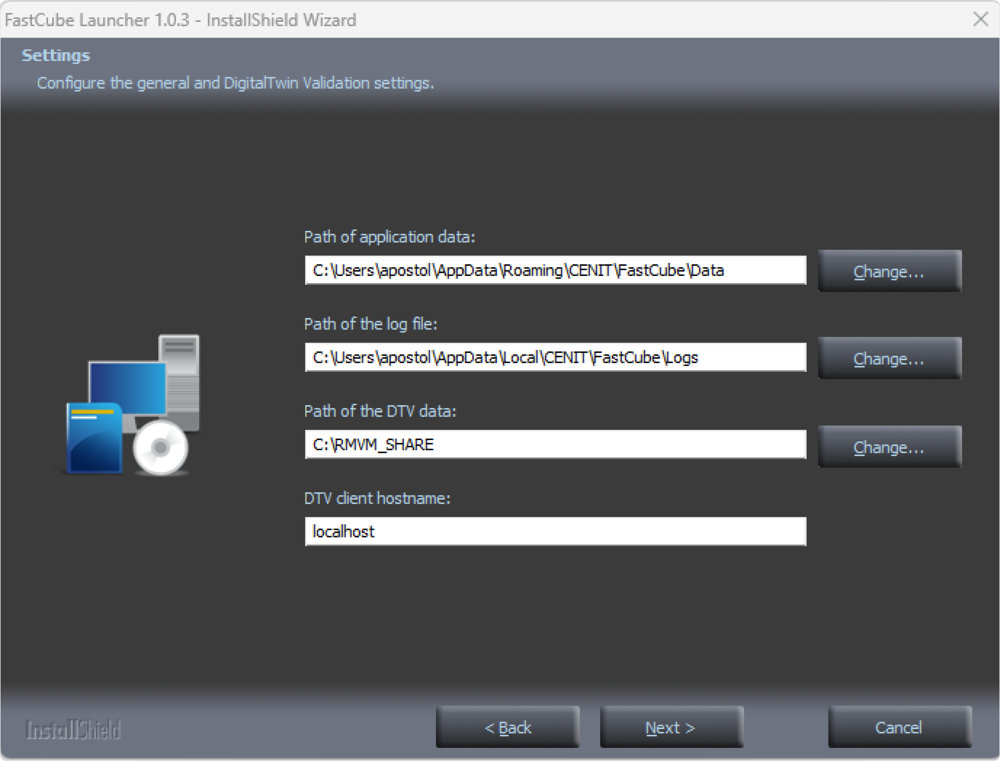 - Path of DTV data – Sets the directories where Digital Twin Validation (DTV) stores its data.