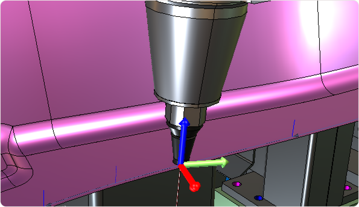 Once the point is selected, the Manipulator appears automatically at the exact location of the selected toolpath point.